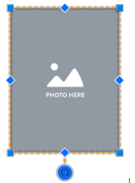 When you click on a photo in your project, you'll see a dotted line with circles at the corner points and diamonds at the center points (see right). These points are the photo handles and will turn white when you mouse over them. Just click on a photo to see them. If they don't appear immediately, move the photo around. Please note that photo handles are not available in the standard prints builder since print sizes are fixed.